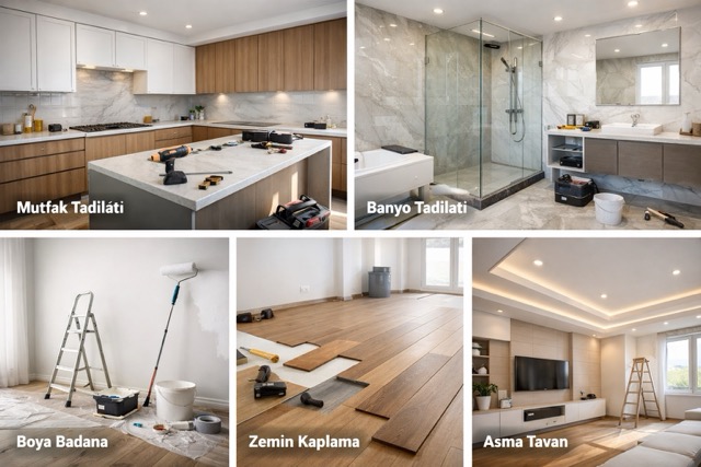 Elektrik tesisatı yenilemeleri, su tesisatı çalışmaları, mutfak ve banyo yenilemeleri, zemin kaplama uygulamaları ve boya badana işlemleri bu kapsamda değerlendirilebilir. Tüm çalışmaların planlı bir şekilde yürütülmesi sayesinde hem süreç daha düzenli ilerler hem de ortaya çıkan sonuç daha kaliteli olur.